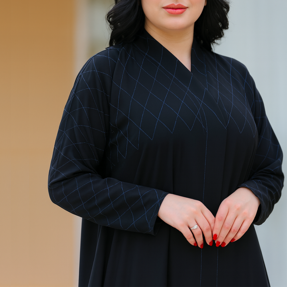 عباية مطرزة كحلي نص كلوش :