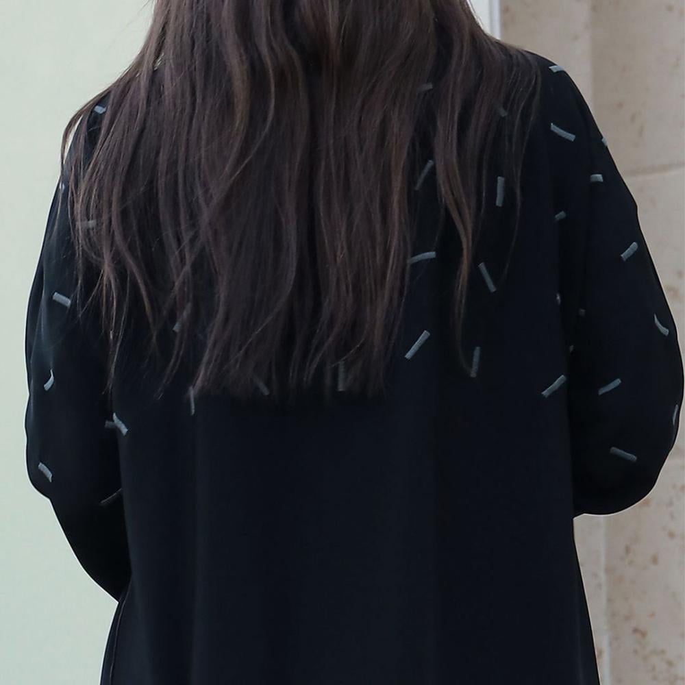 التطريز من درجات الزيتي والخامة عملية لا تحتاج للكوي وسوادها ممتاز موديل ناعم عملية ومعها طرحة متناسقة مع موديل العباية مقاس مترين 70x سم تقريبا بخامة الشيفون