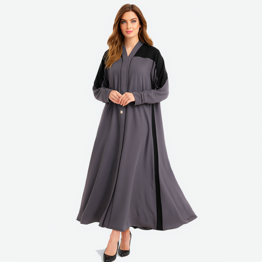 خامة ناعمة باردة لا تحتاج كوي والعباية معها طرحة بلون اسود اطرافها بلون العباية مقاس مترين 70x سم تقريبا بخامة الشيفون