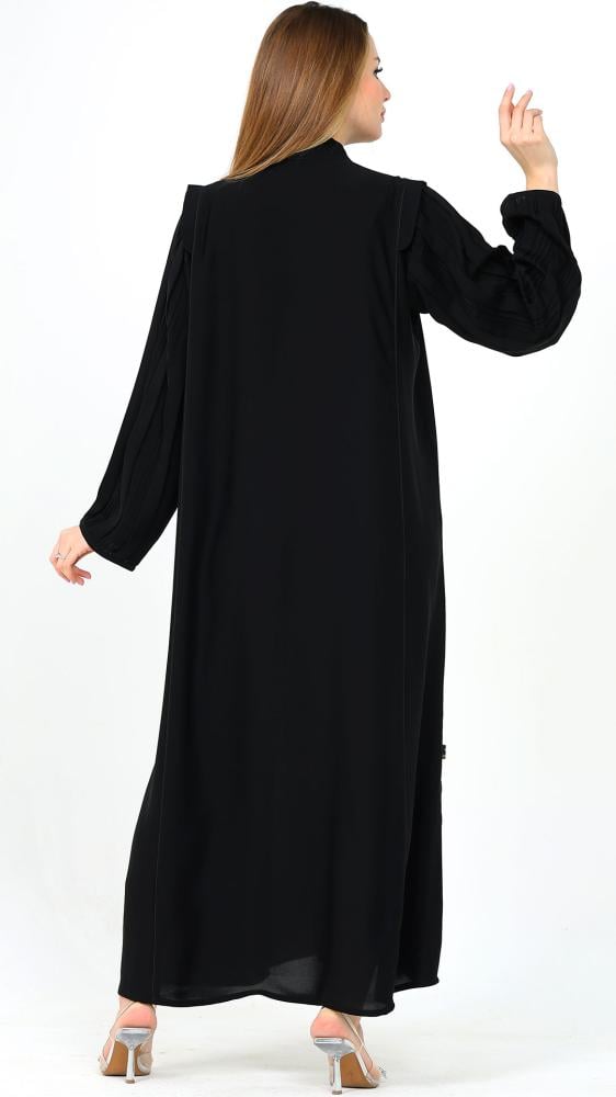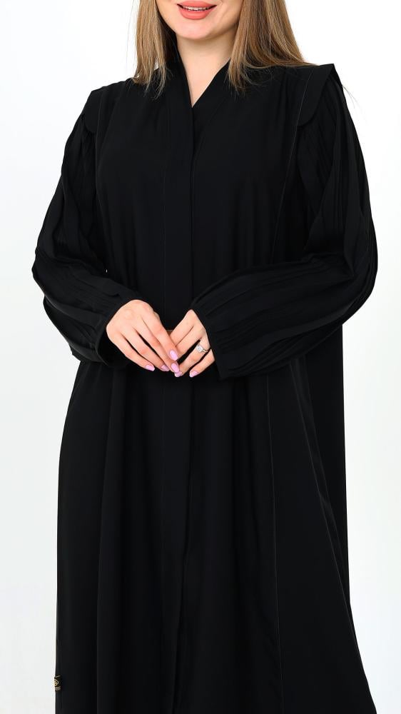 موديل ناعم وعملي مقفلة بطق طق مخفي خامة عملية لا تحتاج للكوي ومعها طرحة مقاس مترين 70x سم تقريبا بخامة الشيفون