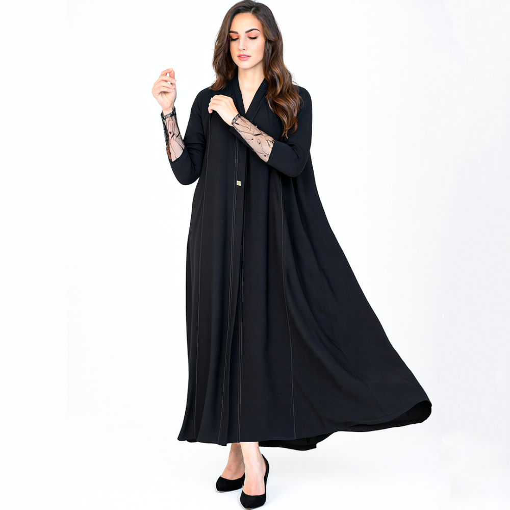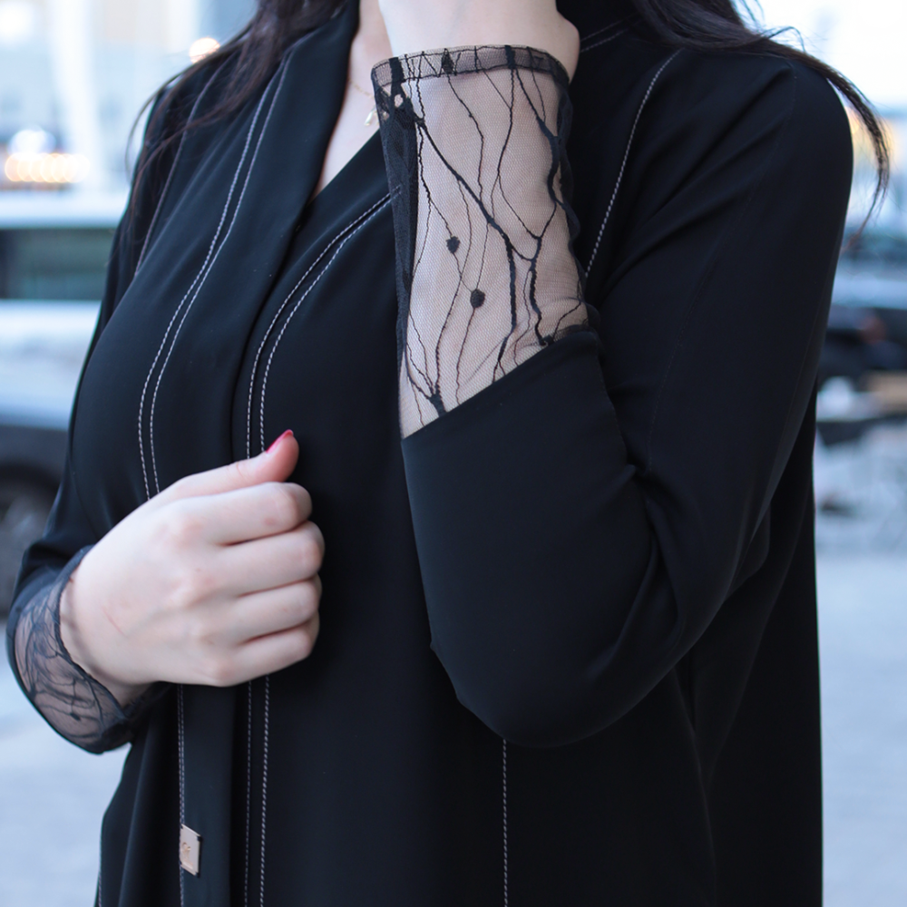 عباية ناعمة وعملية ولا تحتاج للكوي ومعها طرحة متناسقة مع موديل العباية بمقاس مترين 70x سم تقريبا بخامة الشيفون