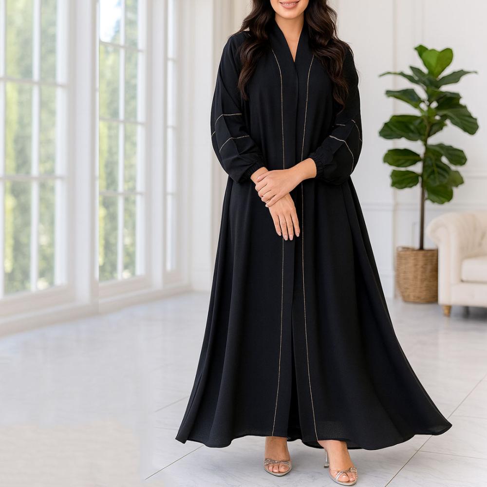 موديل ناعم مقفلة بطق طق مخفي خامة عملية لا تحتاج للكوي ومعها طرحة متناسقة مع الموديل مقاس مترين 70x سم تقريبا بخامة الشيفون