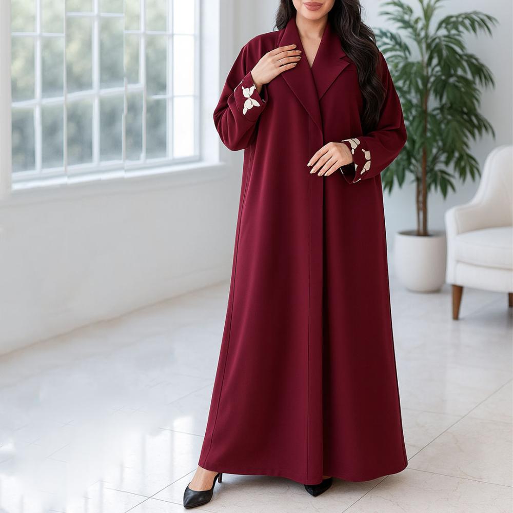 موديل ناعم فها طق طق واحد بالصدر خامة لا تحتاج كوي ومعها طرحة من درجات لون العباية مقاس مترين 70x سم تقريبا بخامة الشيفون