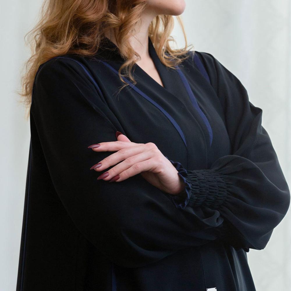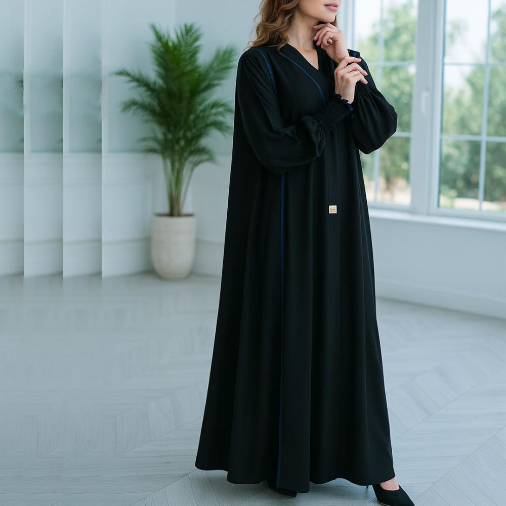 العباية معها طرحة بلون اسود اطرافها بلون موديل العباية مقاس مترين 70x سم تقريبا بخامة الشيفون