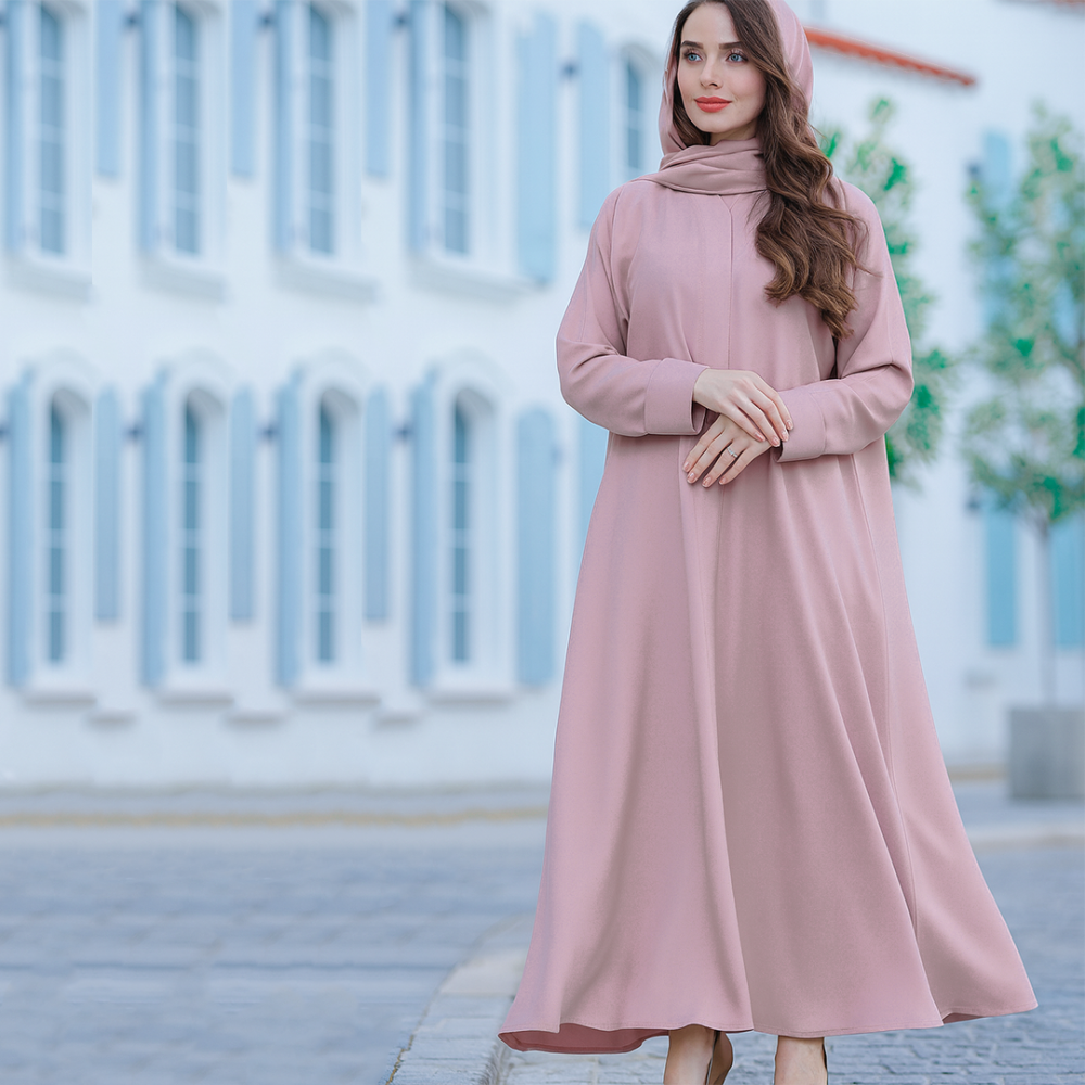 موديل ناعم سادة خامة باردة لا تحتاج كوي ومعها طرحة قريبة من درجة لون العباية مقاس مترين 70x سم تقريبا بخامة الشيفون