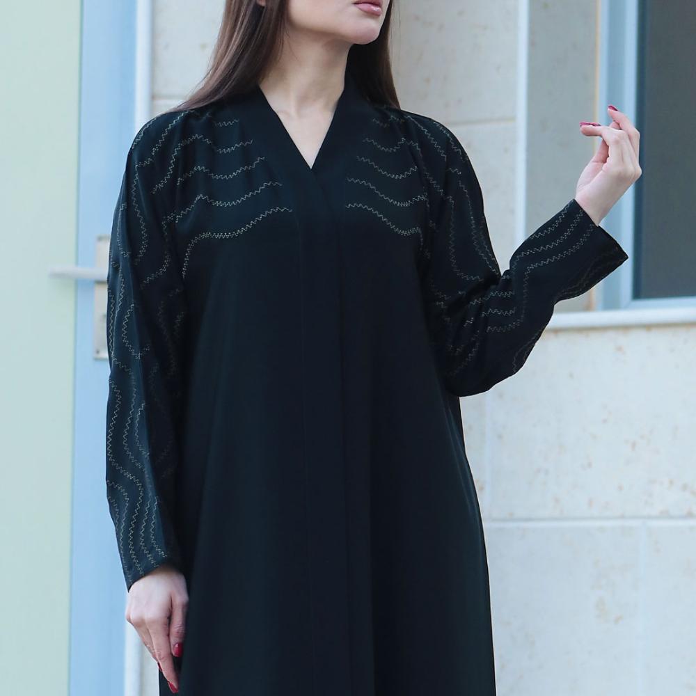 خامة عملية لا تحتاج للكوي وسوادها ممتاز موديل ناعم عملية ومعها طرحة متناسقة مع موديل العباية مقاس مترين 70x سم تقريبا بخامة الشيفون