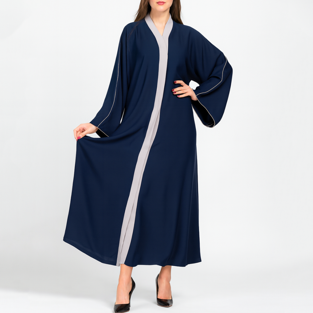 خامة ناعمة وباردة لا تحتاج كوي تناسب الاستخدام اليومي والعباية معها طرحة من درجات اللون الكحلي واطرافها بلون موديل العباية مقاس مترين 70x سم تقريبا بخامة الشيفون