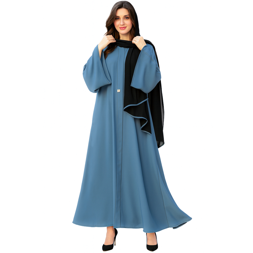 العباية ناعمة وعملية ولا تحتاج للكوي و معها طرحة بلون اسود واطرافها بلون العباية مقاس مترين 70x سم تقريبا بخامة الشيفون